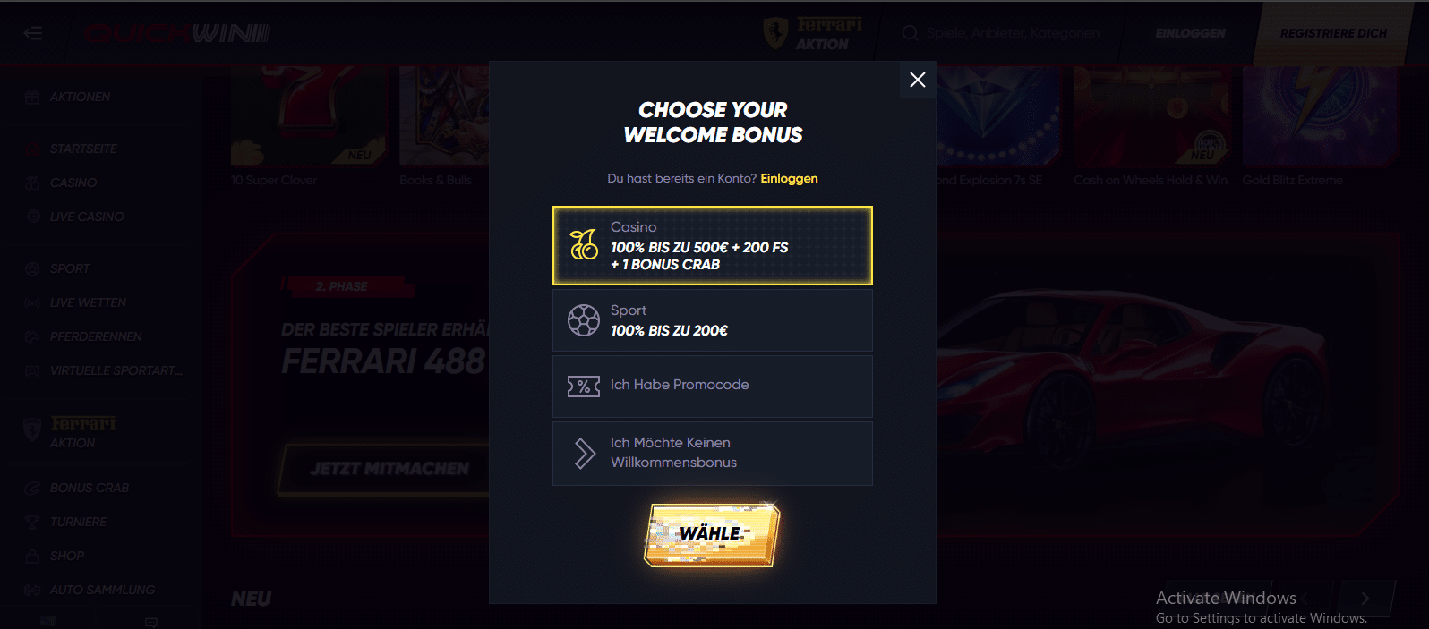 Willkommensbonus 100% bis zu 200€