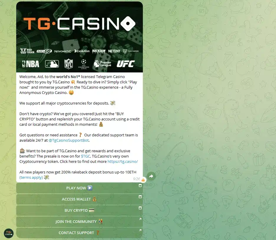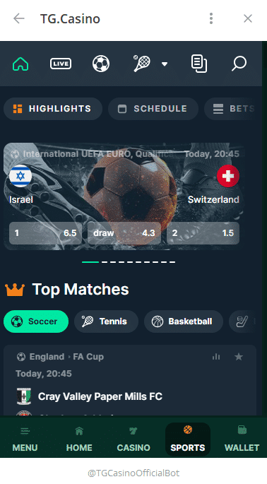 Zusätzlich zu einem breiten Casino Angebot mit zahlreichen der besten Spielautomaten, Crash Games und Live Casino Spiele, bietet Cryptorino auch Sportwetten inkl. Live-Wetten an. Als BTC Casino bietet Cryptorino die Möglichkeit an, bequem über die Telegram App zu spielen.