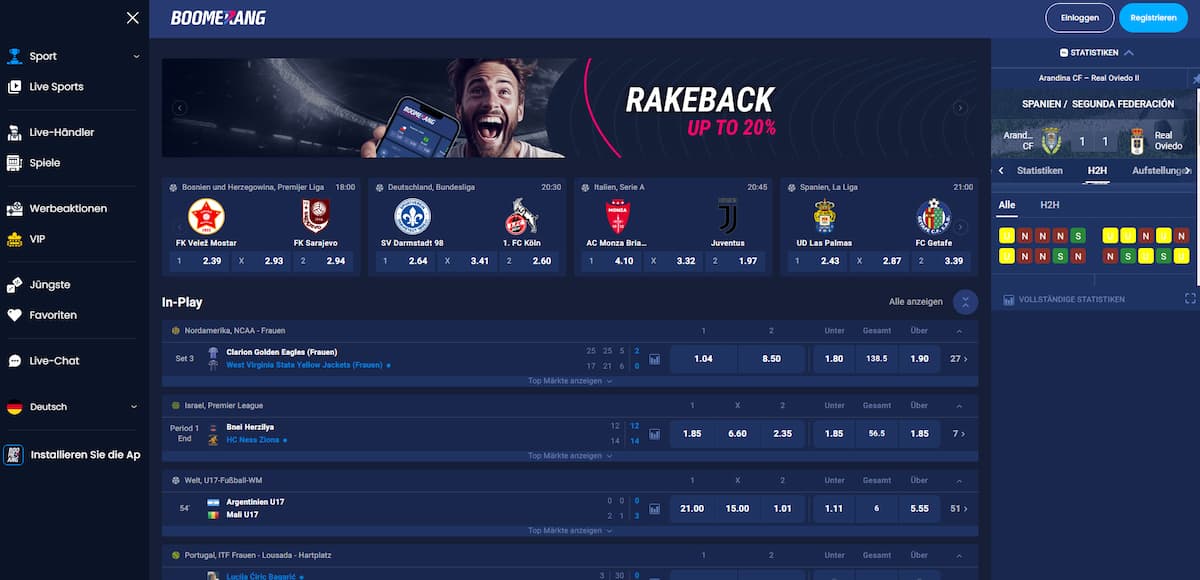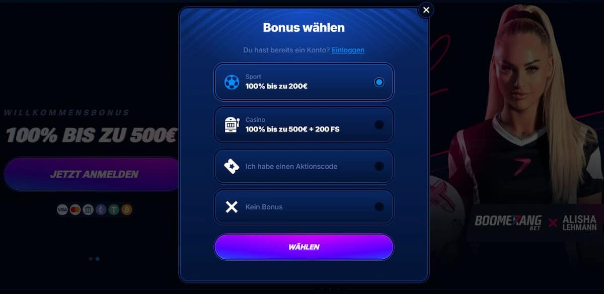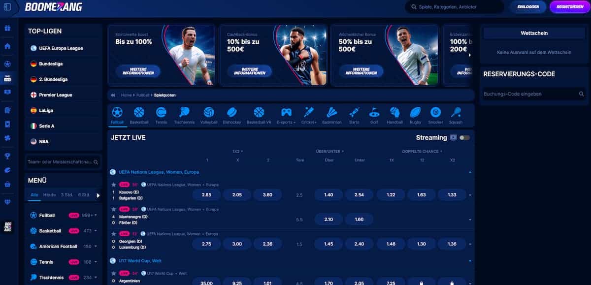Boomerang Bet ist ein Wettanbieter, der im Jahr 2024 mit seinem breiten Angebot an Sportwetten, lukrativen Quoten und spannenden Bonusaktionen wirbt. In unserem Boomerang Bet Test beleuchten wir die wichtigsten Aspekte der Plattform und teilen unsere Erfahrungen.