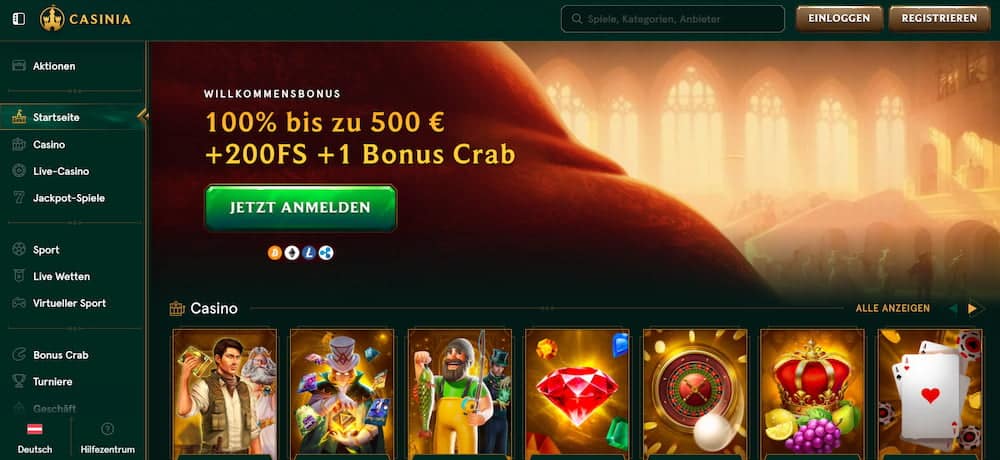 Daher verwundert es auch nicht, dass es ein gutes Wettangebot gibt. Lizenziert ist das Unternehmen in Anjouan, somit ist Casinia legal. Einen attraktiven Bonus für Neukunden gibt es nach unseren Casinia Erfahrungen ebenfalls. Wenn Sie Zahlungen durchführen möchten, können Sie hierfür viele bekannte Zahlungsmittel verwenden. Den Kundensupport erreichen Sie besonders schnell per Live Chat. Lesen Sie im folgenden Testbericht, wie die Casinia Meinung unserer Experten ist und wie die Casinia Bewertung ausfällt.