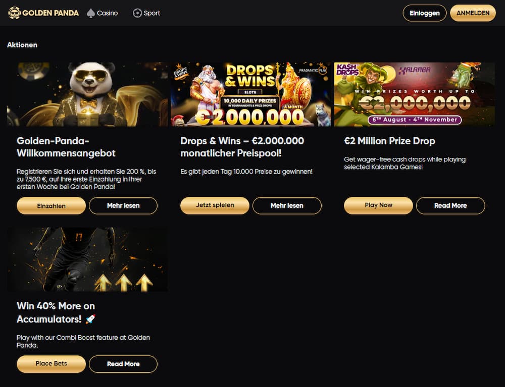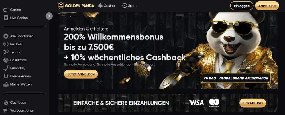 Ziemlich beeindruckend ist das Wettangebot im Allgemeinen, denn neben typischen Sportarten wie Fußball oder Tennis kann auch auf zahlreiche weitere gewettet werden. Wie wäre es etwa mit einer Wette auf E-Sports, US-Sport, Handball oder Boxen? In unserem Golden Panda Test sind wir aber nicht nur auf eine große Sportauswahl, sondern auch auf sehr faire Quoten gestoßen.