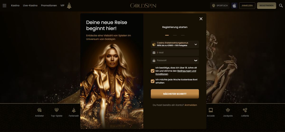 GoldSpin Casino präsentiert sich als junger, aber bereits konkurrenzfähiger Anbieter mit einem Angebot auf höchstem Niveau. Die Spielauswahl überzeugt durch Vielfalt und Qualität – egal ob Slots, Live-Dealer-Tische oder klassische Casino-Spiele, hier kommt jeder auf seine Kosten. Besonders attraktiv ist der faire Willkommensbonus, der einen starken Anreiz für neue Spieler bietet. Auch Bestandskunden profitieren von regelmäßig wechselnden Aktionen und Treueprogrammen.