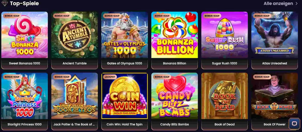 Hat ein Slot die neue Bonus-Buy Funktion, so wird dies von GreatSpin direkt auf der Hauptseite in der Spielpräsentation angezeigt. Einkaufen in die Freispiele können Sie sich unter anderem am Axe Max, Bonanza Billion, Big Atlantis Frenzy, Zeus Fortune oder King of Cats.