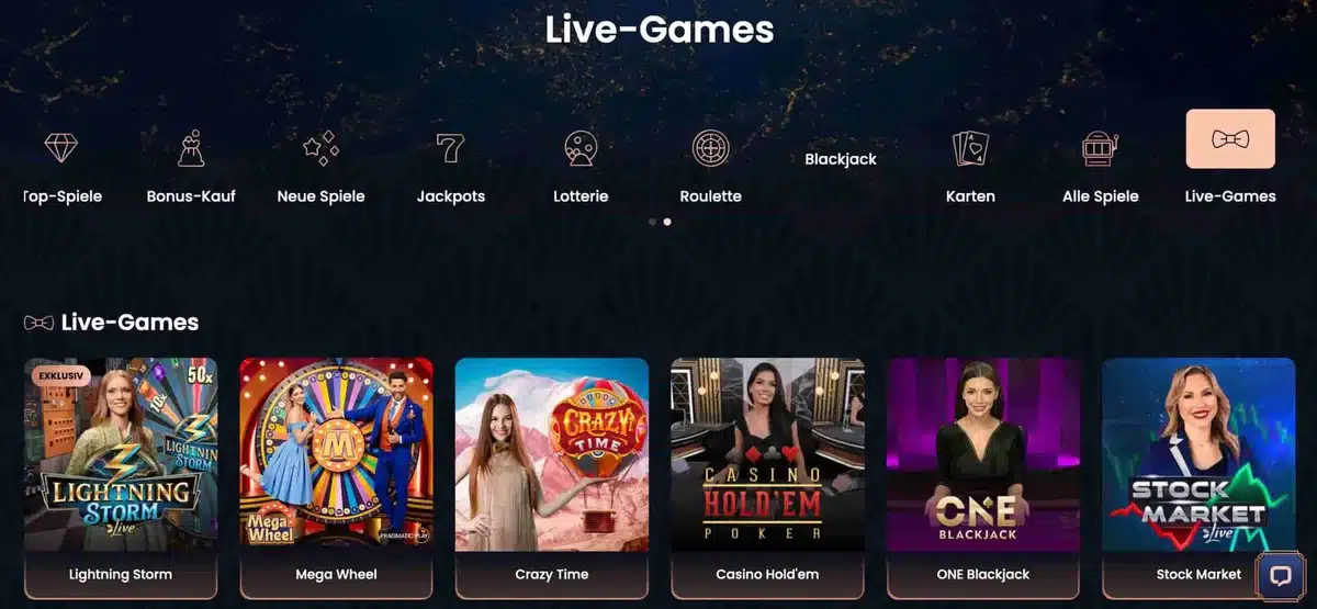 Die überwiegende Anzahl der GreatSpin Live Dealer Spiele wird vom Marktführer Evolution Gaming gestreamt. Allein dieser Punkt zeigt die Qualität der Offerte. Angeführt werden die Live Dealer Tische natürlich von GreatSpin Casino Live Blackjack, Online Roulette, Baccarat und Poker. Die großen Casino-Spiele können in unterschiedlichen Ausführungen gespielt werden. Das Online Casino hat mehrsprachige Croupiers an Bord.