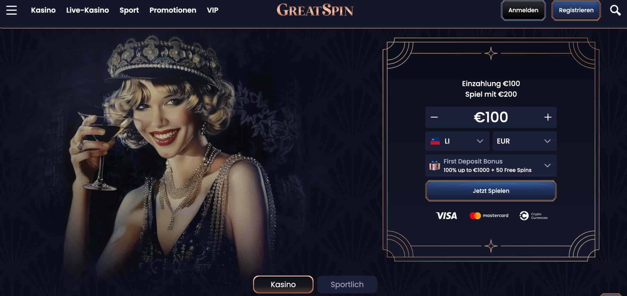 Die Qualität der Spielauswahl ist in allen Sektionen ansprechend. Mit gut 4.000 Spielen auf dem Bildschirm gehört GreatSpin zu den mittelgroßen Online Casinos auf dem Markt. Akzeptiert an der Kassen werden Krypto- und Euro-Einzahlungen. Das Promo-Angebot umfasst nicht nur den Neukundenbonus, sondern zahlreiche Aktionen für die Stammspieler.