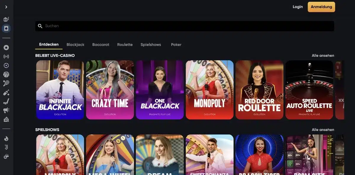 Besonders hoch in der Beliebtheitsskala stehen unter anderem Dead or Alive Saloon, Sweet Bonanza Candyland, Mega Wheel, Boom City, Extra Chilli Epic Spins, Cash or Crash oder Vegas Ball Bonanza.