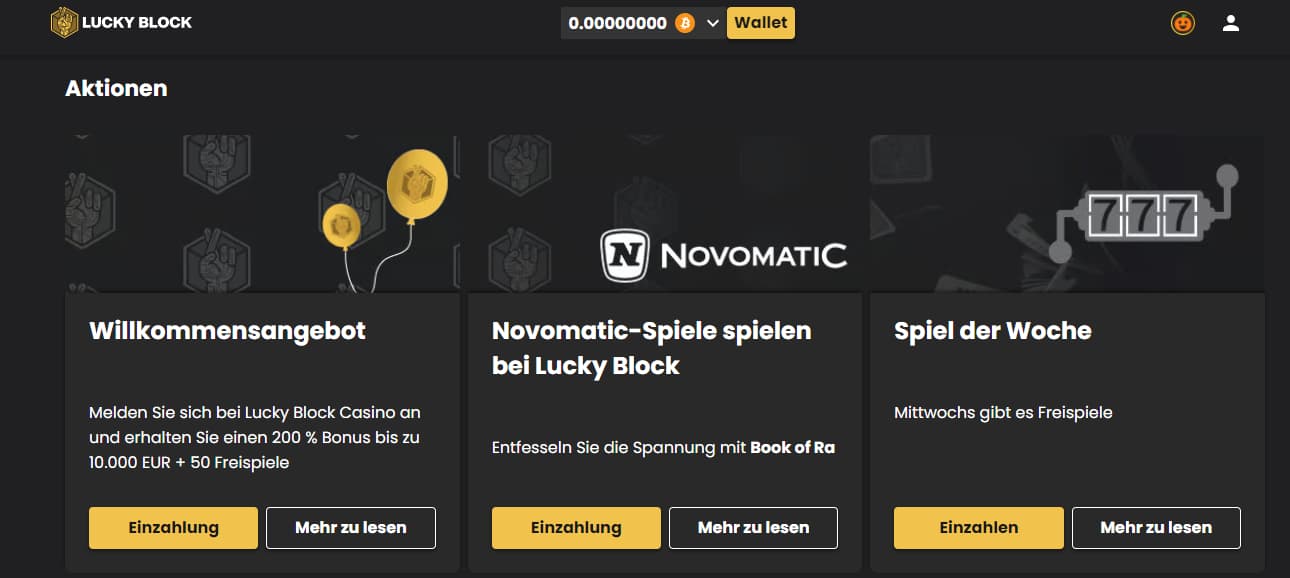 Sobald das Guthaben auf dem Konto eingetroffen ist, kann das komplette Lucky Block Angebot genutzt werden. Unsere Lucky Block Erfahrungen zeigen, dass es auf diesem Portal sehr viel Interessantes zu entdecken gibt.