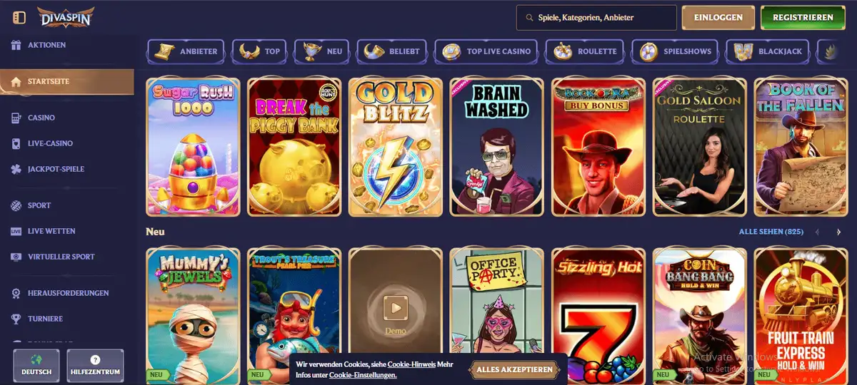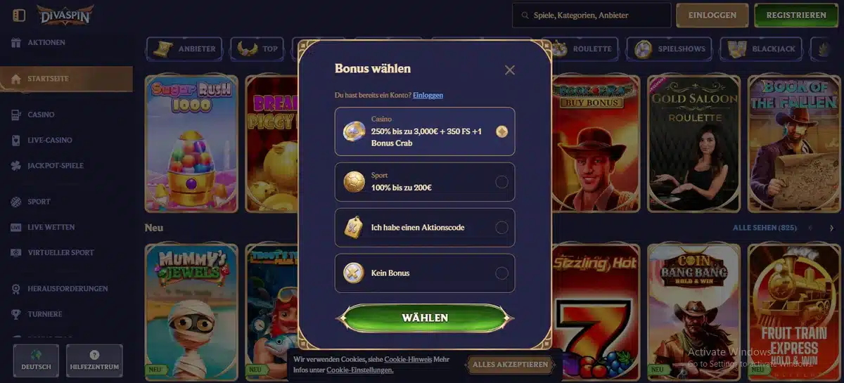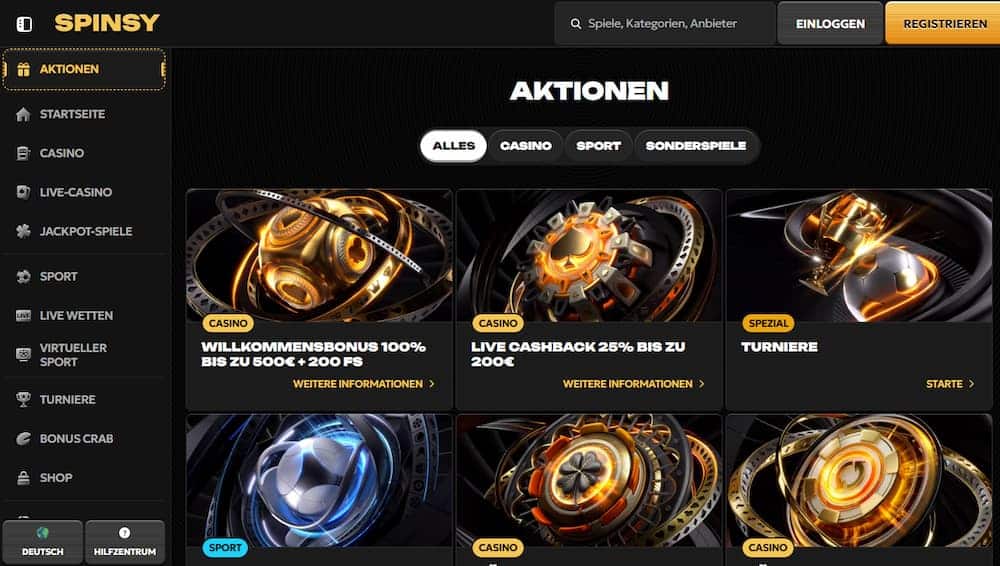 Wenn Sie lieber beginnen möchten, im Sportwetten online Casino Bereich zu spielen, müssen Sie nur die Registerkarte „Casino“ am oberen Rand der Seite anklicken. Dann werden Ihnen alle Spielkategorien angezeigt.