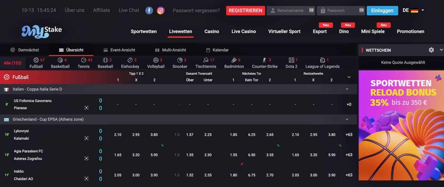 So kannst du auch deine Wetten der kommenden Tage planen. Auf einen Livestream kannst du leider nicht zugreifen. Dafür sorgt der Bookie mit verschiedenen Statistiken, Live-Tickern und Grafiken für beste Mystake Erfahrungen.