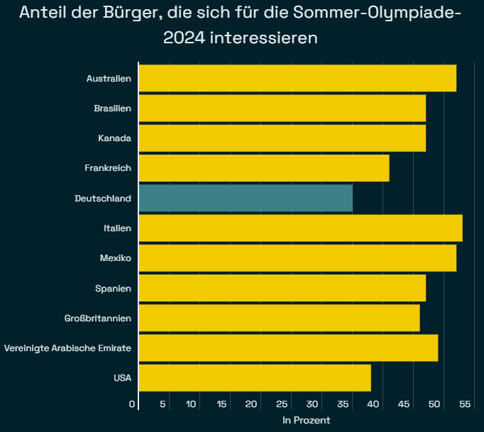 Beim Bürgerinteresse landet Deutschland keineswegs auf der ersten Position: Lediglich 35 Prozent der Deutschen geben an, sich für die Sommer-Olympiade 2024 zu interessieren. Damit landet die Bundesrepublik von allen abgefragten Ländern auf dem hintersten Rang. Auf Platz 1 rangiert Australien, wo 52 Prozent der Bevölkerung Interesse zeigt. Länderübergreifend zeigt sich je nach Einkommen eine große Varianz: Je höher das Einkommen, desto ausgeprägter das Interesse an der Sommer-Olympiade.Willbet Casino Deutschland – Willkommen Bonus und Top Spiele
