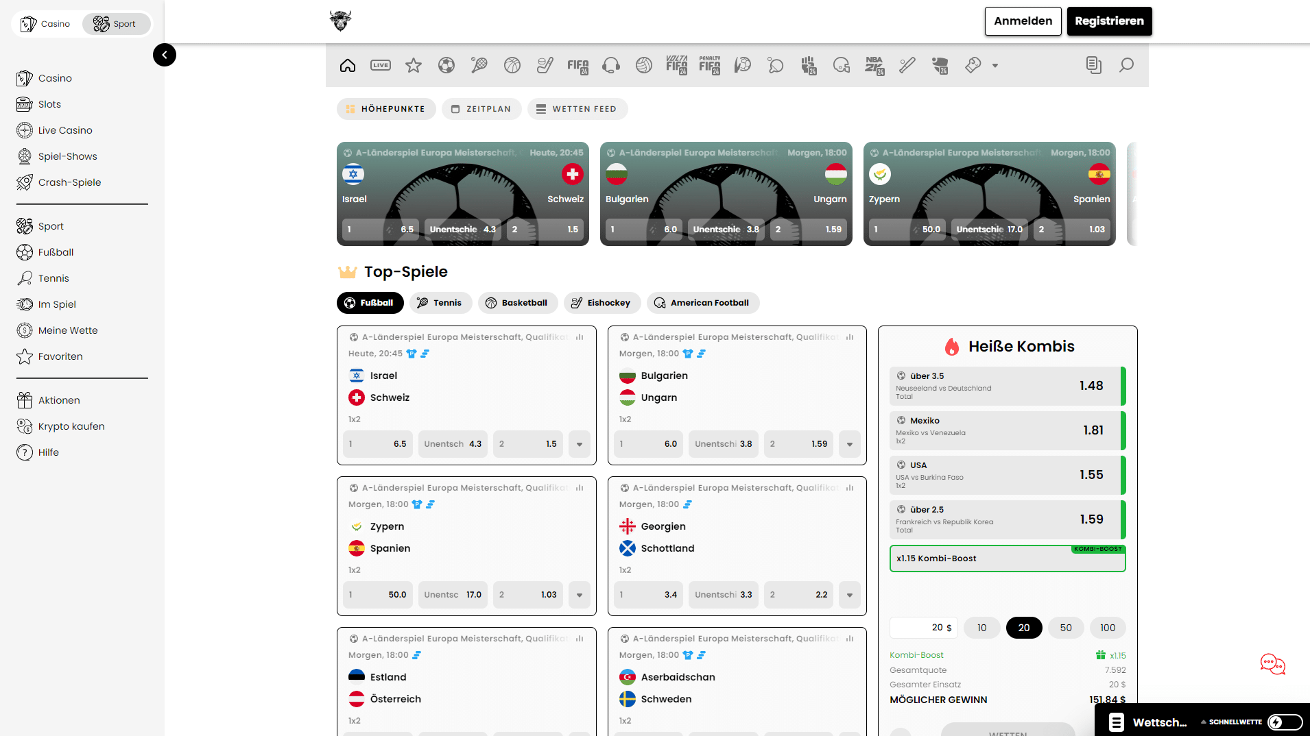 Die Plinko Spielauswahl ist mit 15 Game-Varianten extrem groß und wird stetig weiter ausgebaut, weshalb unsere Plinko Erfahrung bei Cryptorino erstklassig ausfällt. Cryptorino arbeitet mit über 70 Spieleherstellern zusammen und mietet deren Top-Titel, so dass Sie eine abwechslungsreiche, stetig aktualisierte Auswahl genießen können. Zahlungen tätigen Sie in diesem Krypto Casino mit digitalen Währungen.
