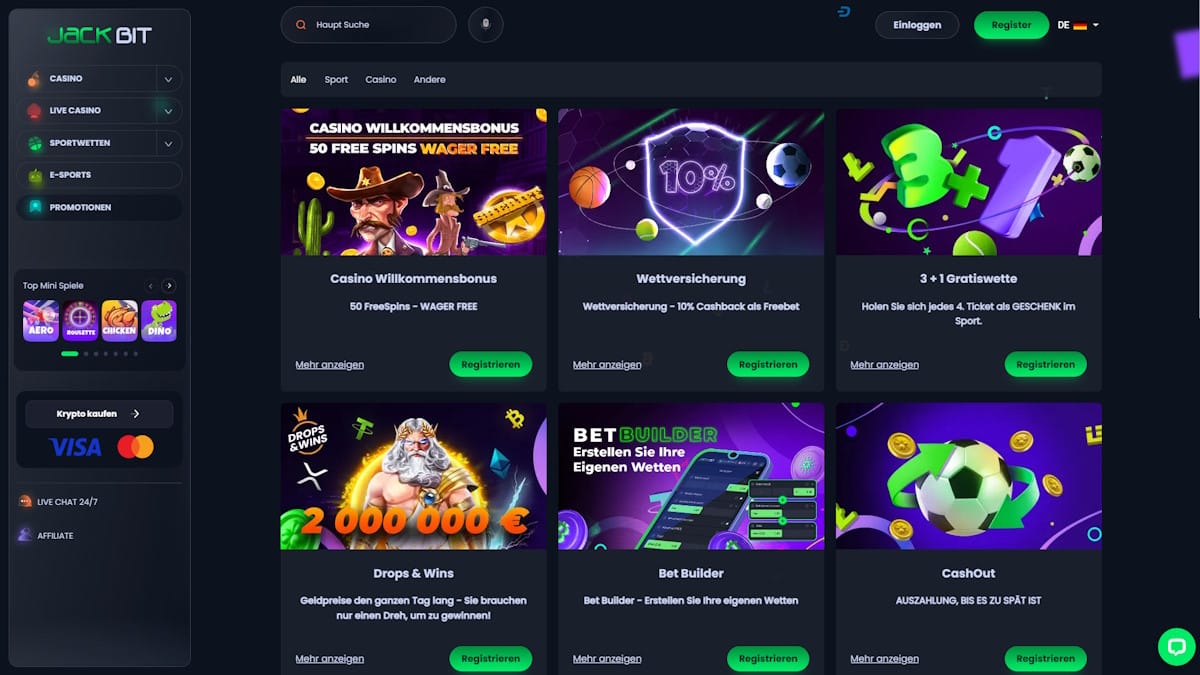 Im Cryptorino Casino finden Sie sehr gute Spiele, einen exzellenten Support und eine moderne App. Sie legen mit einem Cryptorino Willkommensbonus los, der Ihre erste Einzahlung bis zu 1 BTC verdoppelt. Dadurch werden sowohl Ihr Budget als auch Ihre Gewinnchancen maximiert. Regelmäßig sind weitere Prämien für Bestandskunden verfügbar, die sich teilweise stark von denen der Konkurrenz unterscheiden. So finden Sie in diesem Plinko Casino Online Loot Box Drops, Missionen und Herausforderungen, aber auch Freispiele und ein VIP-Programm samt Cashback.