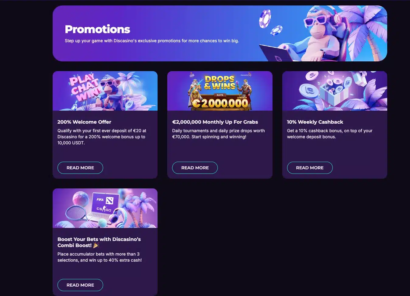Boni gibt es bei BC.Game Casino sowohl für die Neukunden als auch für die Stammspieler, wobei der Willkommensbonus heraussticht. Sie erhalten ein Willkommenspaket bis zu 1.600 € sowie 400 Freispiele, verteilt auf vier Einzahlungen. Am Glücksrad haben Sie tägliche die Chance auf Gewinne bis 5 BTC, das VIP Programm sorgt für weitere Boni.
