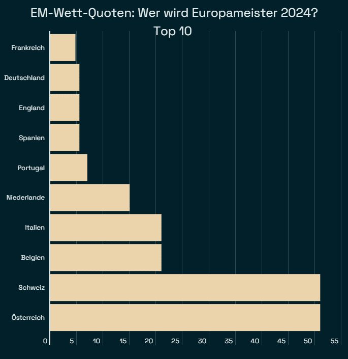 In der Vergangenheit lagen die Buchmacher mit ihren Quoten oft im Recht – sei es im Sportbereich oder auch beim Ausgang politischer Wahlen. Geht es nach den aktuellen Wettquoten, dann ist Frankreich bei dieser Fußball-EM der absolute Favorit, gefolgt von Deutschland, England und Spanien (alle drei gleichauf).