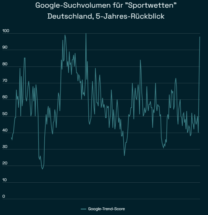 Dass die Nachfrage dieser Tage so hoch ist, zeigt die Suchmaschinenauswertung von Google. Der Google-Trend-Score für den Begriff “Sportwetten” notiert aktuell bei 98, wobei der Maximalwert von 100 das größtmögliche relative Suchvolumen angibt. Noch höher war das Suchaufkommen lediglich Anfang Dezember 2020.Willbet Casino Deutschland – Willkommen Bonus und Top Spiele