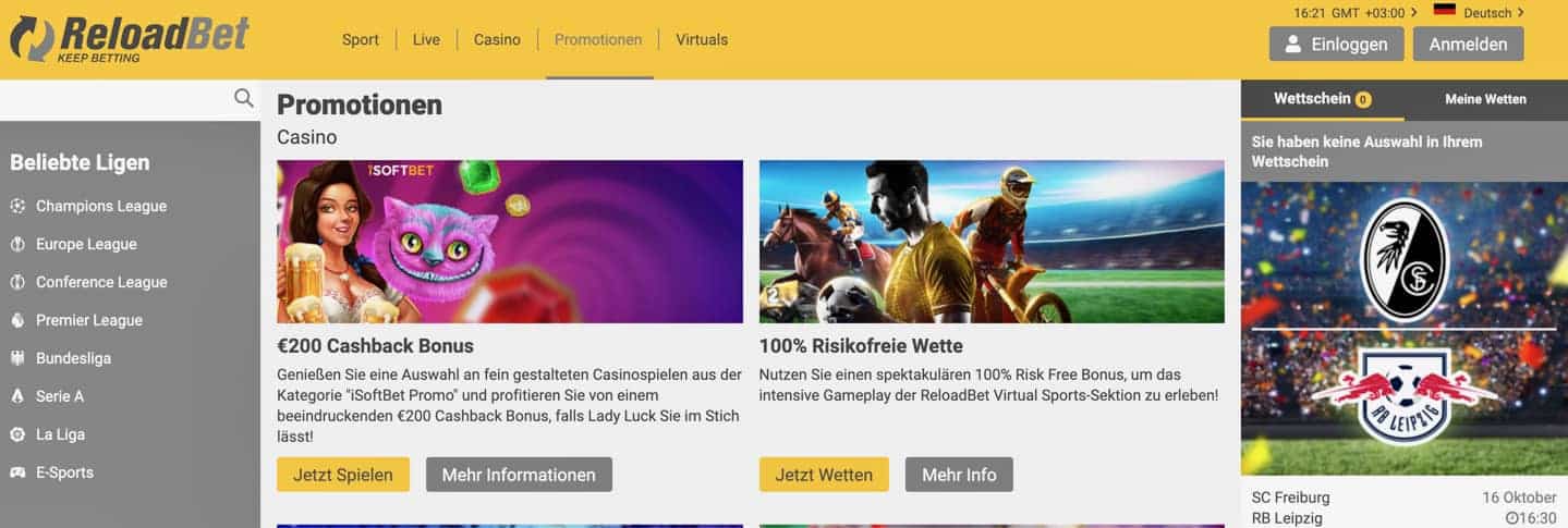 Und können wir nach unserer Reloadbet Bewertung wirklich empfehlen, sich bei diesem Buchmacher anzumelden? Diese und viele weitere Fragen beantworten wir nun hier in diesem Ratgeber.